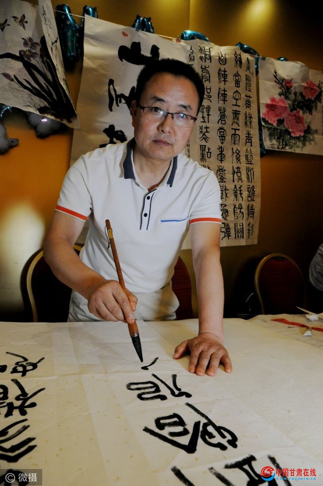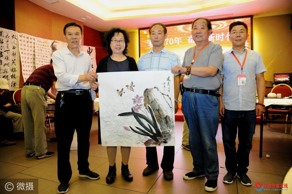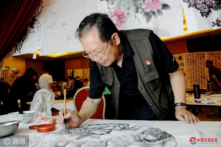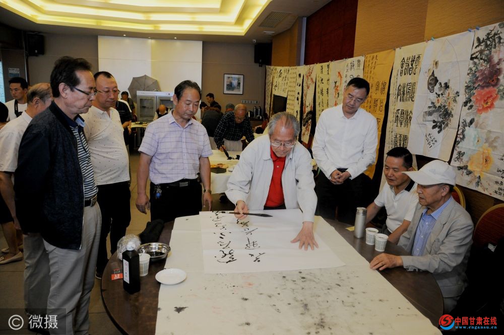 中国甘肃在线兰州讯:(文:辛万毅 摄影:梁剑 责任编辑:赵小春)2019年7月18日,在中华人民共和国建国70周年生日来临之际,甘肃省西部缘书画院在金城兰州举办“壮丽70年,奋进新时代”书画名家笔会活动,该院在辛万毅院长的带领下,通过这样的形式,来表达对党的热爱,对祖国的祝福。
