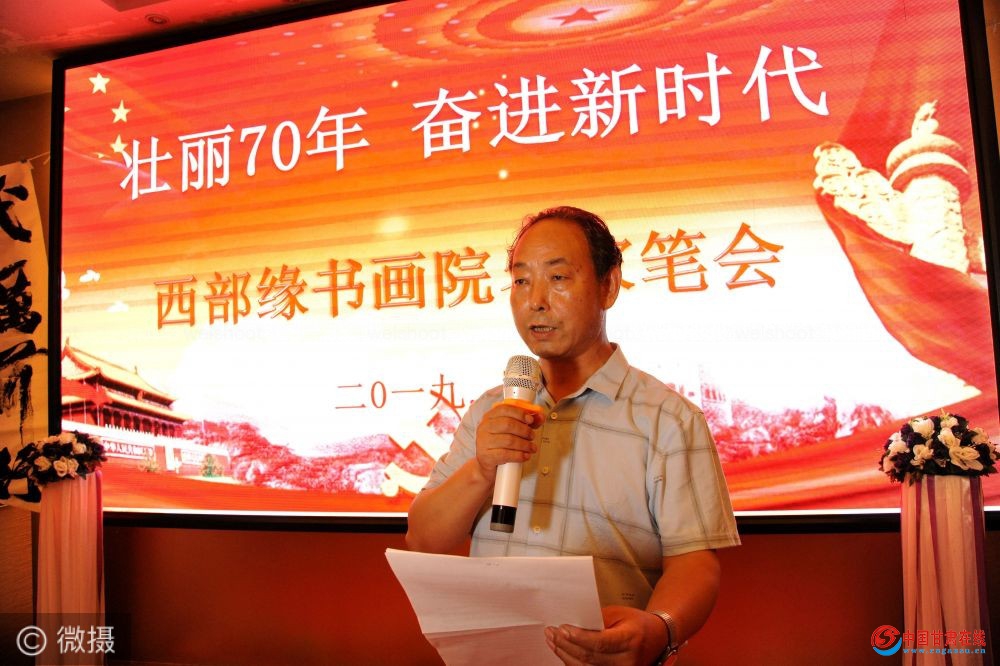 一个书画院的活力和凝聚力关键在于活动力,书画结缘,翰墨筑梦,西部缘书画院就是本着广结书画善缘,为所有离退休书画爱好者搭建相互交流学习的平台,采取多种笔会模式,开展多样性的交流活动,拓展交流渠道,增强文化自信,继承传统文化,宣传美丽甘肃,为广大书画爱好者服好务,为社会贡献一份爱心。各位老师,悠悠岁月铭记着您的奋斗足迹,书画传承镌刻着您的不朽功绩。让我们继续团结在一起。老有所乐,老有所为。今年是中华人民共和国成立70周年,是脱贫攻坚,全面建成小康社会的关键之年,我们要以习近平总书记:新时代中国特色社会主义思想为指导,传播正能量,共筑翰墨梦。