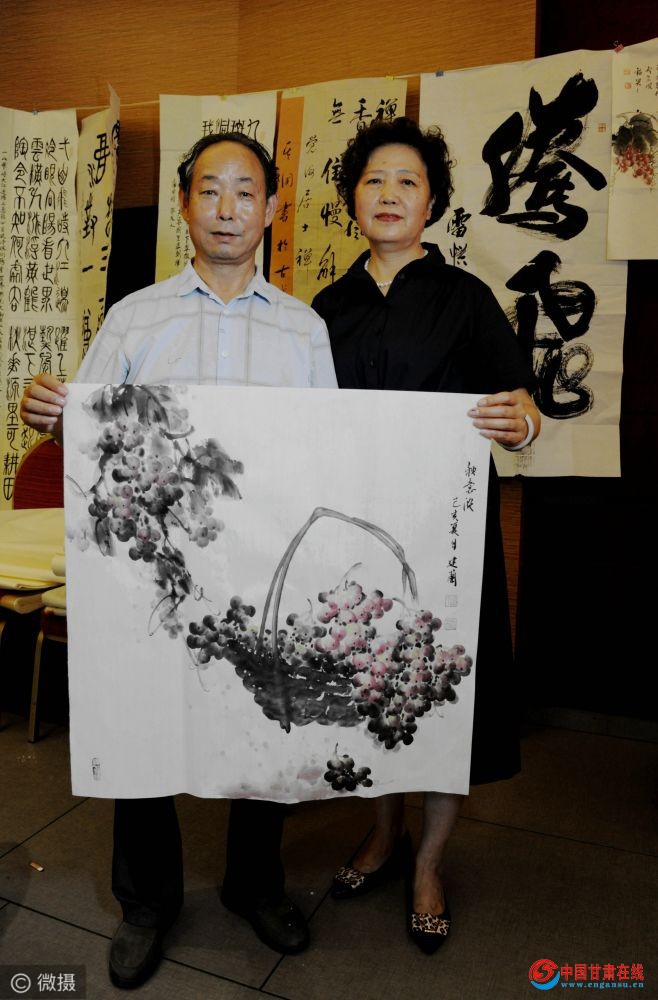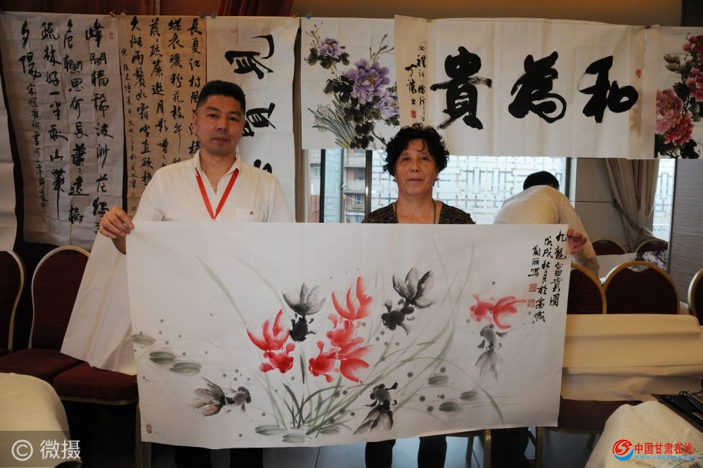 书画家与作品合影