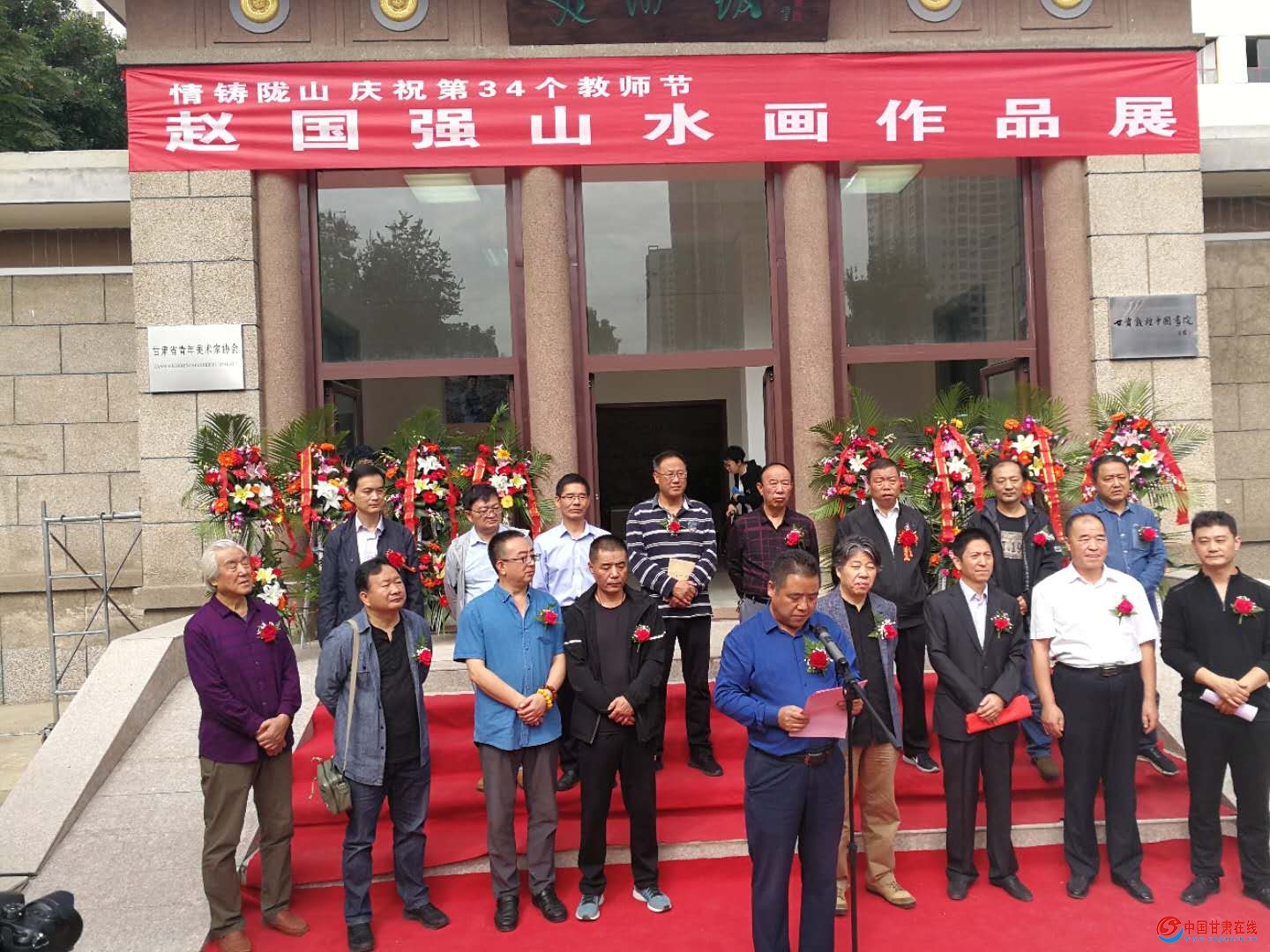 中国甘肃在线兰州讯 (责任编辑:赵小春)8月7日,金秋送爽,翰墨飘香。“情铸陇山、庆祝改革开放四十周年及三十四个教师节——赵国强山水画展”今天在省博美术馆隆重开幕了。甘肃省政协常委,省文联副主席,省美术