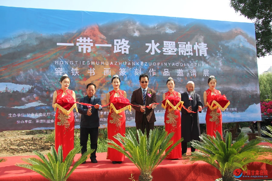 中国甘肃在线网讯:(文/图:王新年)9月11日上午,“一带一路 水墨融情——容铁书画篆刻作品邀请展”在甘肃画院正式开展。展出将持续至9月15日,共展出容铁先生书法、绘画、篆刻作品100多幅。本次展出由甘肃省文化
