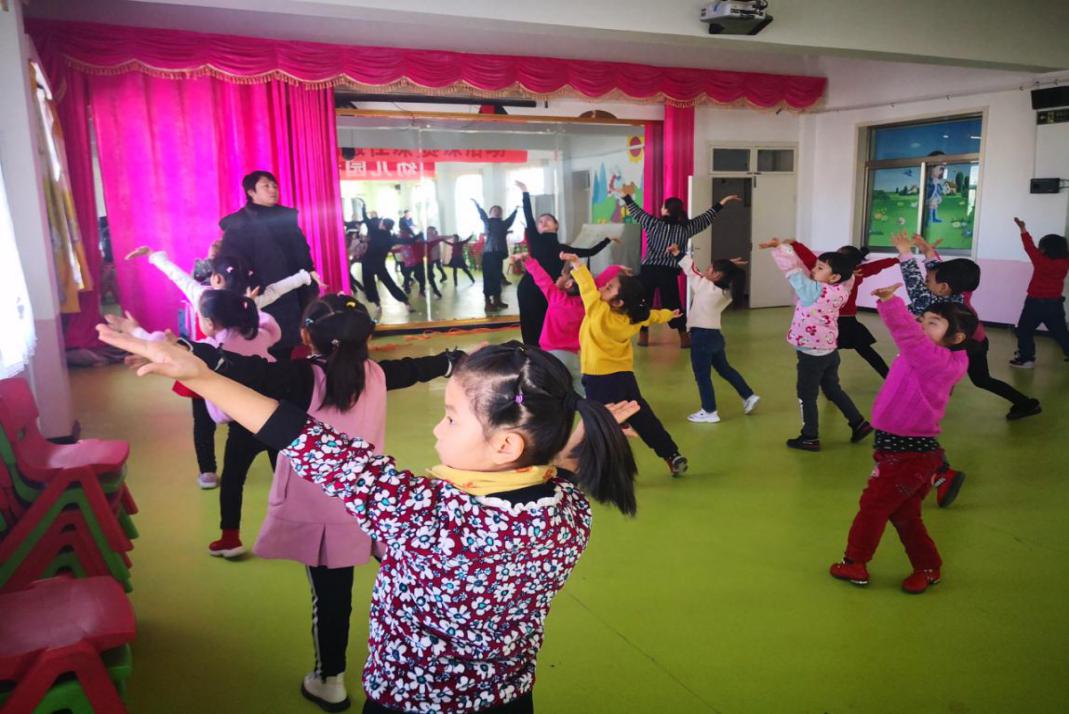 敦煌学院师生在阿克塞县幼儿园为孩子们指导敦煌舞