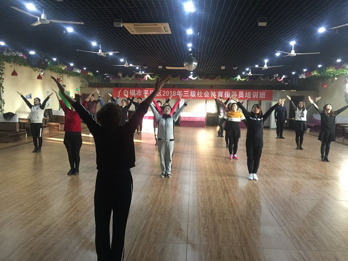 本次培训的内容为国家体育总局审定发行的第九套广播体操,旨在保证平川区机关企事业单位工间操制度顺利实施,加强社会体育指导员的管理、培训工作,发展壮大社会体育指导员队伍,加强对全民健身活动的指导。
