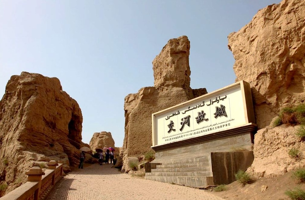 交河故城--是世界上最大最古老、保存最完好的生土建筑城市,也是我国保存两千多年最完整的都市遗迹,唐西域最高军政机构安西都护府最早就设在交河故城。1961年被列为国家重点文物保护单位。交河故城也是国家文物局公布的“丝绸之路:起始段与天山廊道的路网”22处申遗点之一。
