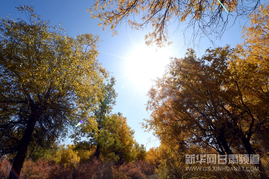 这是金塔县城以西巴丹吉林沙漠边缘的胡杨林(10月13日摄)。