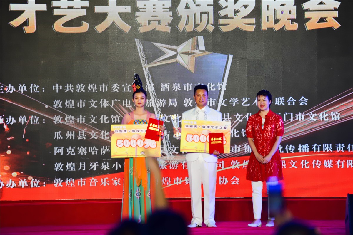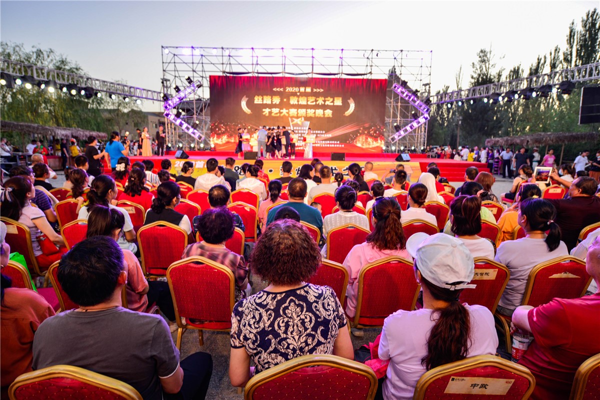 2020年8月23日晚,首届丝路秀·敦煌艺术之星才艺大赛颁奖晚会及优秀节目在敦煌月牙泉小镇精彩上演。(王斌银 文/摄影)