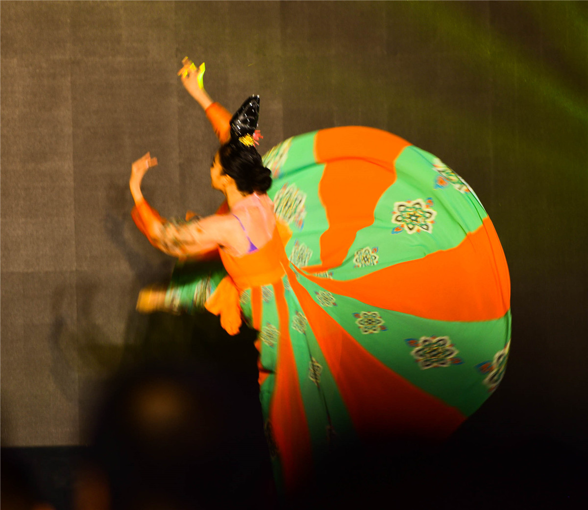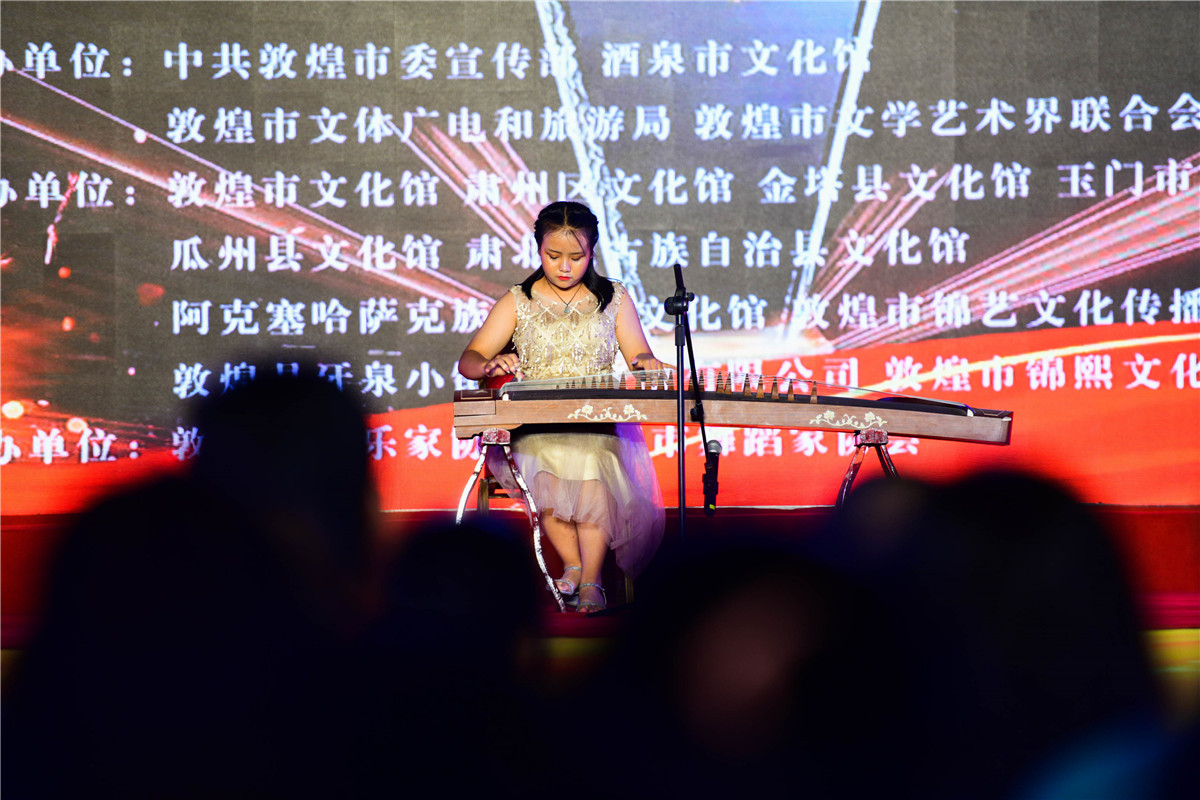 敦煌市民和游客观看首届丝路秀·敦煌艺术之星才艺大赛颁奖晚会及精彩演出节目。
