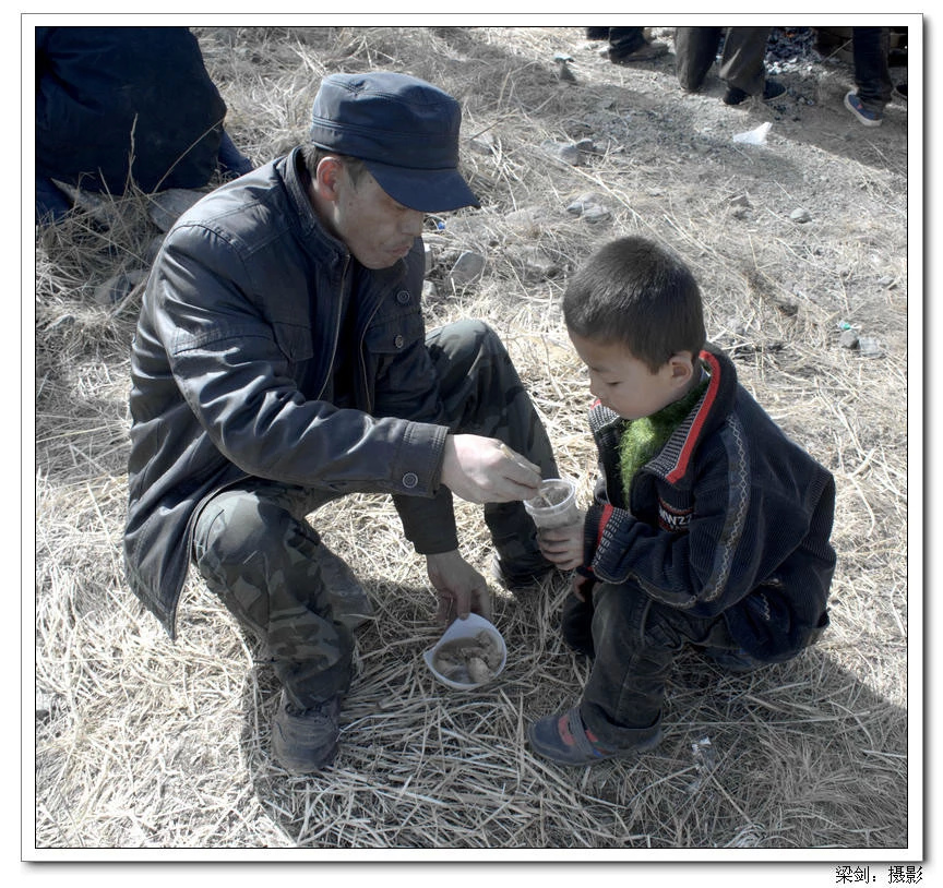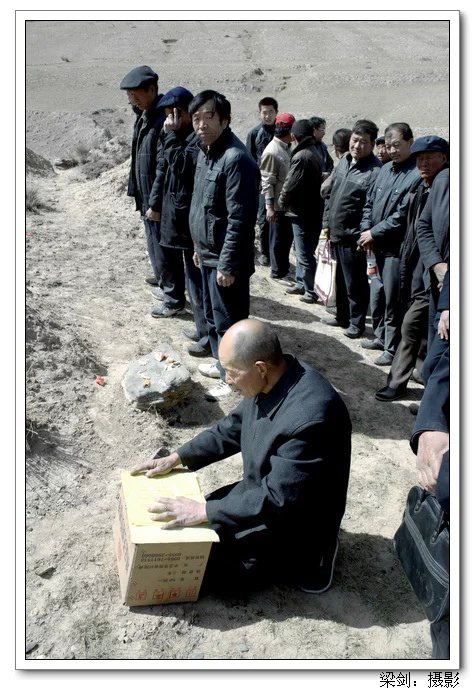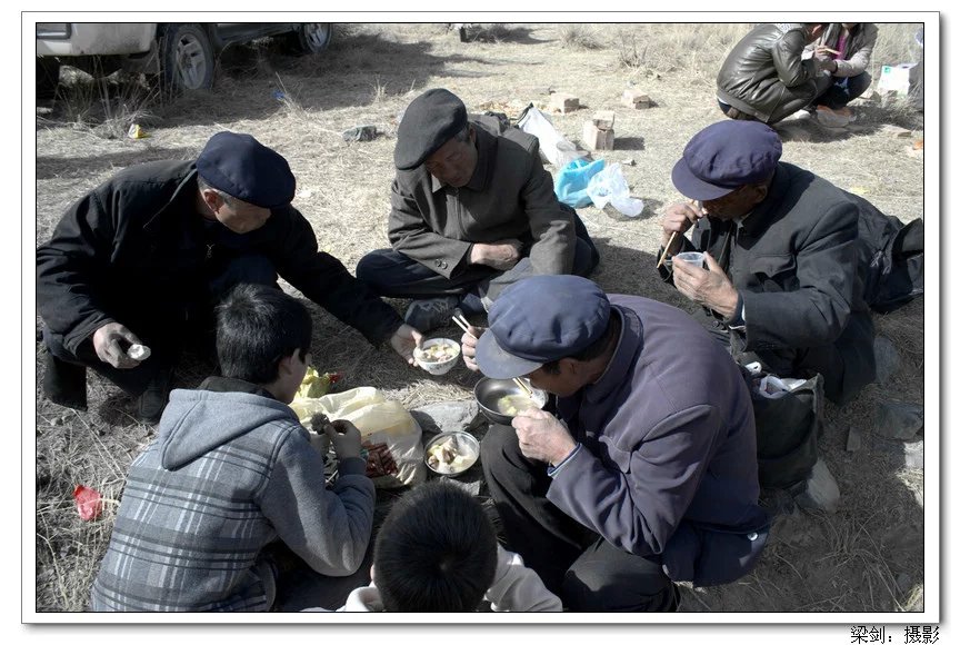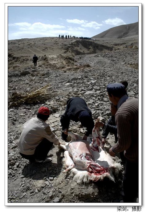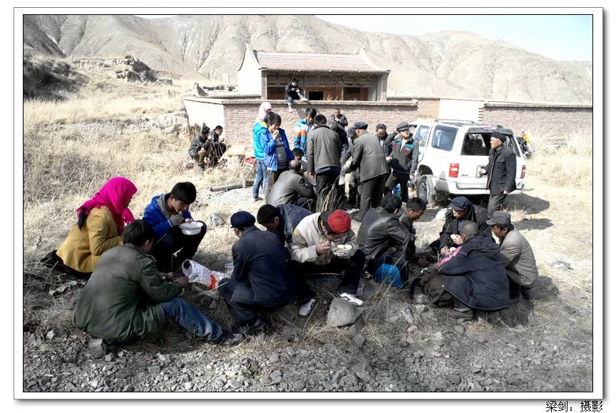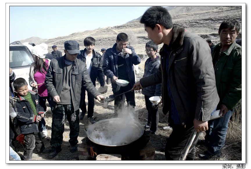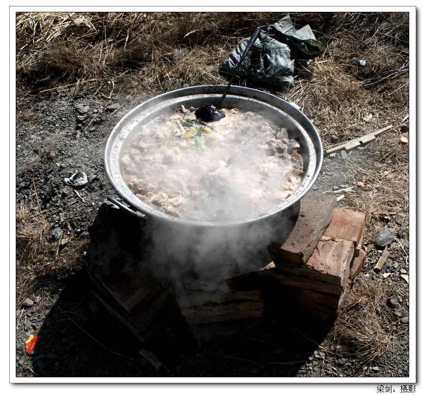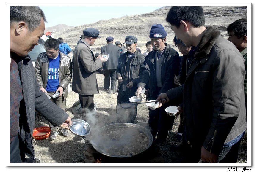 上坟人员集体在家庙宰羊祭祖,后在现场大锅灶炖烧,全体人员一起品用----
