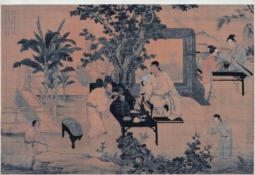 《玩古图》  明代中期的画坛,除了最活跃的吴门画派和浙派之外,在南京还出现了一些独具风格的文人画家。他们个个能诗、能文、擅书、擅画,且性情开朗,豪放不羁,杜堇就是其中一位。杜堇的人物画宗法李公麟,笔法