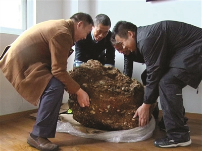最新挖出的大号“金陵神罐”。 叶方龙摄这次这个以前挖到的原标题:千万年机缘巧合,玄武岩被凿成空心 六合废砂矿挖出千斤重“金陵神罐”昨天上午,扬子晚报记者接到市民报料称,有村民在南京六合区方山地质公园附近