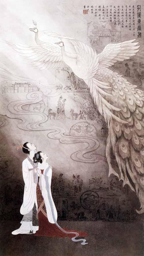 汉《孔雀东南飞》中,刘兰芝是安徽庐江郡人,她那种南方女子细瘦的腰身,是“腰若流纨素”,仿佛洁白的绢。先秦时鲜有描写身段,汉赋是繁复地描述衣饰,并不着眼于衣下,却都以细瘦为美。唐以后渐渐有了点写意的直白,那时所崇尚的并不是胖,而是“肥”。肥的意思是肉体均匀地附着在骨骼上,没有赘肉,珠圆玉润。在《虢国夫人游春图》、《捣练图》中,多是一群圆脸的大胖姑娘,透着那么健壮可爱。但唐朝也是追求身段的,白居易写宫人是“脸似芙蓉胸似玉”;他的歌妓是“樱桃樊素口,杨柳小蛮腰。”元稹在《和乐天示杨琼》中写道:“腰身瘦小歌圆紧,依约年应十六七”。杜牧写《遣怀》:“落魄江湖载酒行,楚腰纤细掌中轻”。都是在写身段。
