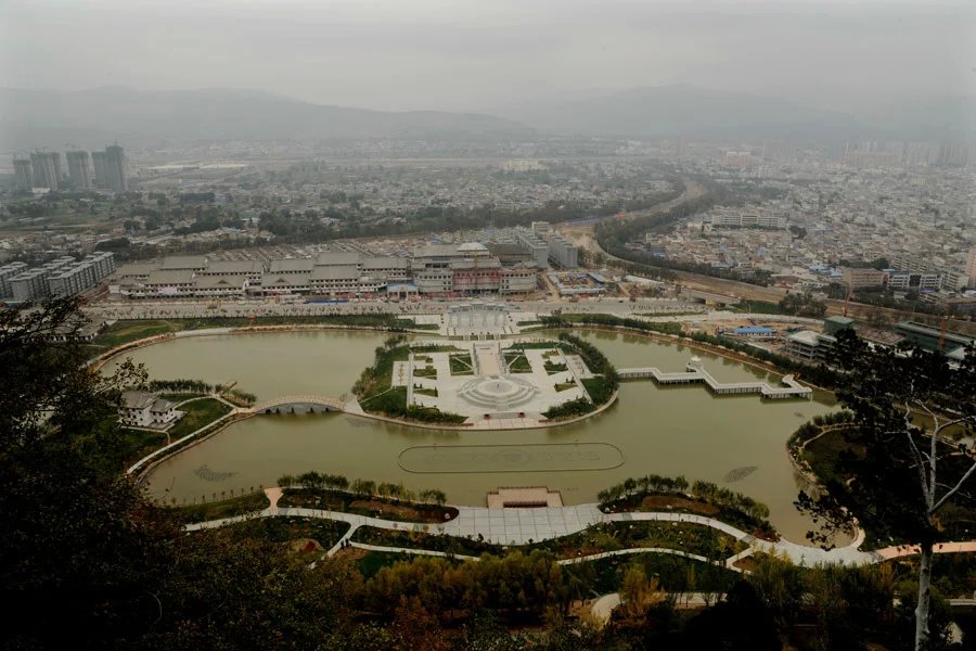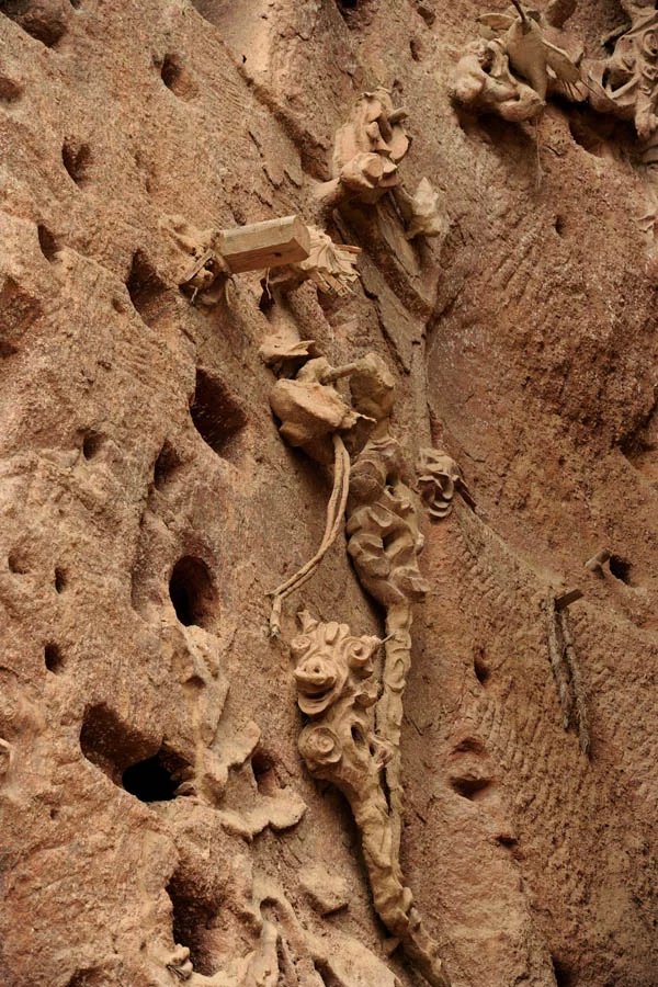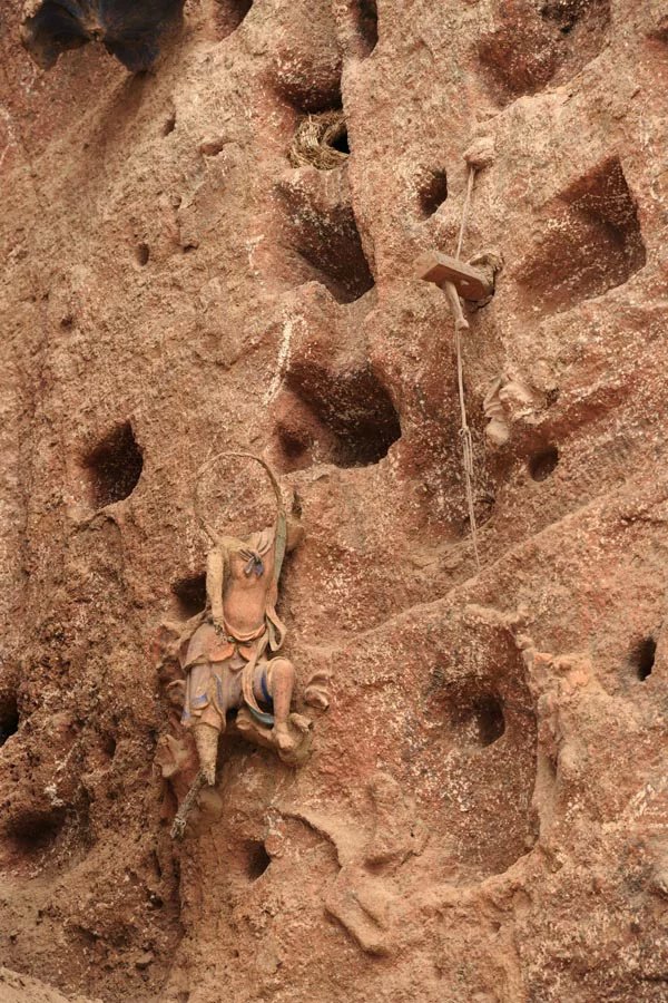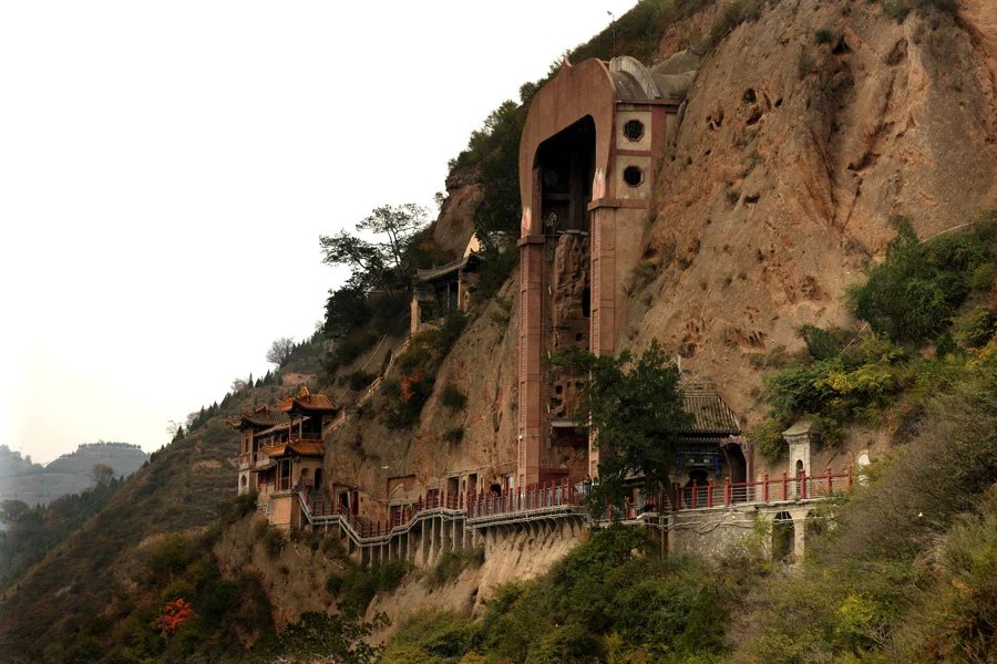 石窟及古建筑均建于山岗起伏、苍翠叠嶂的文旗山悬崖峭壁上,冈峦起伏,迤俪东来,飞翠叠嶂,峭壁雄峻。横岭之上,楼阁鳞次,祠宇相望,四季景色分明。登临"白云封处"依窟北望,渭水如带,烟波东泻,陇海铁路横贯东西,渭北山丘蜿蜒起伏;俯视山下,通广渠依山而过,阡陌井然,如茵如毯。自山脚拾级而上,紫丁香漫山遍野,花香袭人,楼阁殿宇依山就势,密布山岭,逐台登高,各具特色。