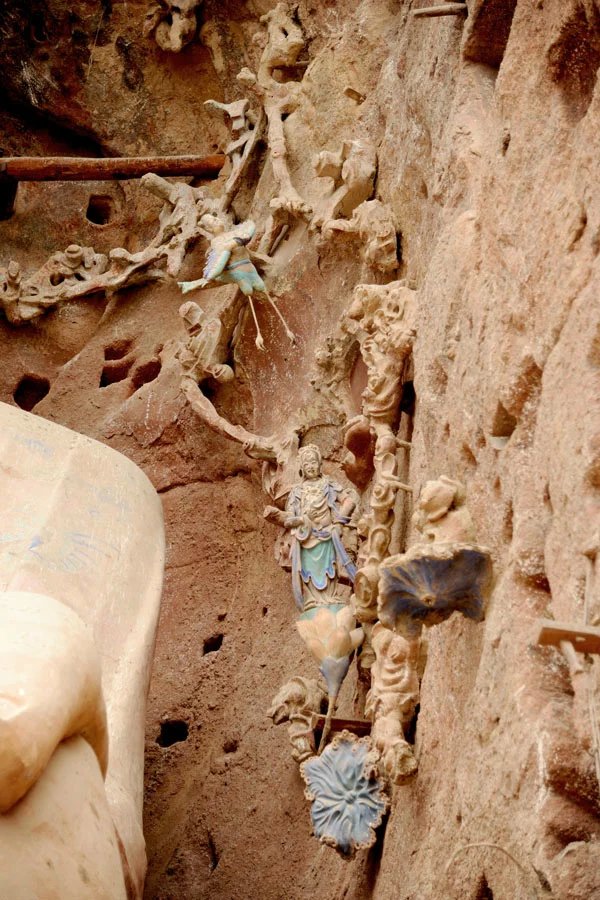 真殿、接引佛殿、文昌宫、灵岩寺、鲁班殿、关圣殿、无量殿、双明洞、大佛殿、三圣殿等。尤以气势宏伟的太昊宫、文昌阁、关圣殿、无量殿、双明洞、大佛殿为其名胜之冠。就其组合布局来看,以无量殿为界,其下主要为木结构建筑物15处;其上以石窟群为主,并以大像窟为中心,有洞窟23处,塑像中以大佛像最为有名。除石窟、古建筑外,还有后汉隗嚣歇凉台、阅兵台(均在无量殿)等遗址、"羲皇故里"碑、"圣门石子故里"碑、"重修汉平襄侯祠记"碑等文物。