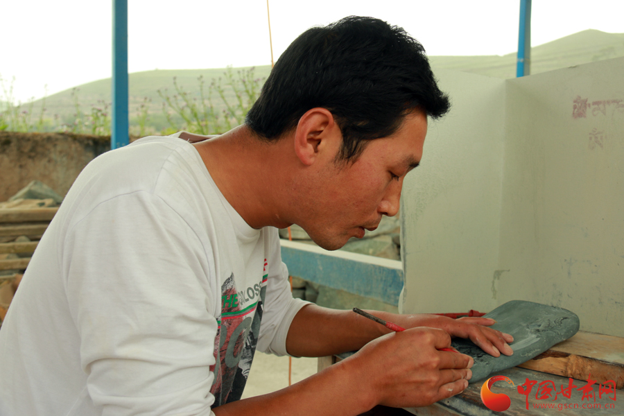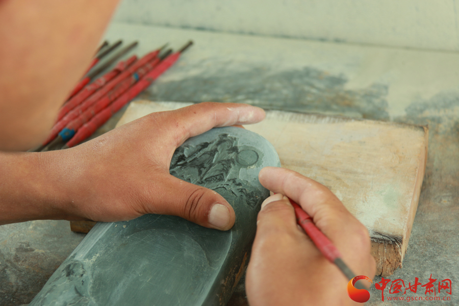 卢苏努是一名年轻的雕刻师,卓尼洮砚人,在卓尼县城从事雕刻师的工作,年纪轻轻的他从事这份工作也已有十余载。本网记者 金琼 摄