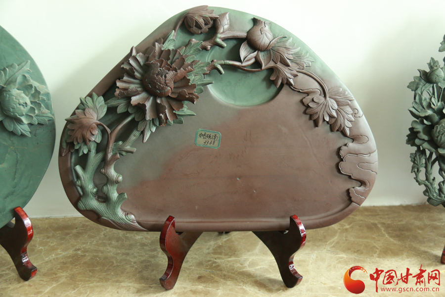 洮砚石结构细密兼含有多种金属离子,不仅发墨快,而且墨汁油润有光泽,所制砚石滑不拒墨,涩不滞笔,硬度适中,恰到好处。图为洮砚作品。本网记者 金琼 摄