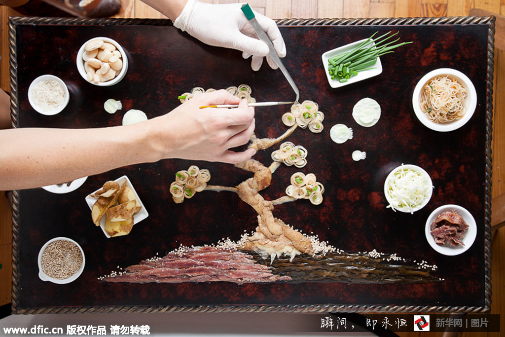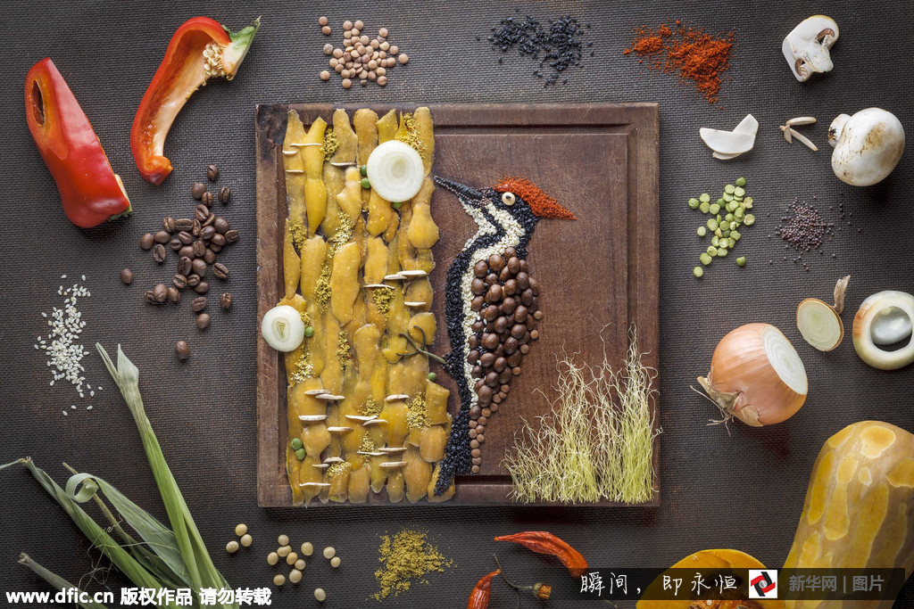 2015年10月15日(具体拍摄日期不详),来见识一下这名用食物创作出令人惊艳的可食用艺术作品的美国女艺术家Anna Keville Joyce。Anna充分发挥自己的想象,借助从蔬菜到香肠等各种食物通过摆盘创作出了包括城市地标和色彩多样的动物在内的各种作品。这些作品细节精致,乍看之下让人难以判断出作品的原材料。因此,Anna在完工的作品四周摆放了所用到的食材。尽管这么一盘作品的创作最多耗时可达6个小时,但常常在短时间内就干瘪凋零。