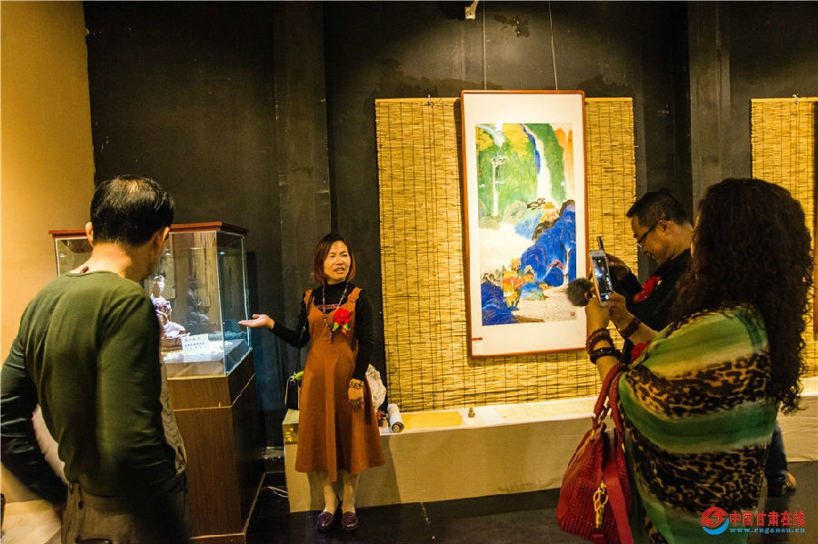 江苏宜兴紫砂器(壶)艺术展览在敦煌画院开幕仪式现场。 (王斌银 摄)