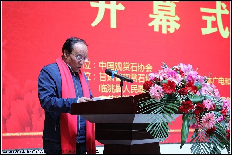 郑忠代表甘肃省观赏石协会和全省石友向2020中国·临洮第二届赏石文化节的开幕表示热烈祝贺,并表示临洮的赏石文化走在了全省的前列,离不开各级党委政府的支持、一流场馆的支撑和领军人物的引领,希望县观赏石协会进一步挖掘奇石文化内涵,推动赏石文化更好的发展。
