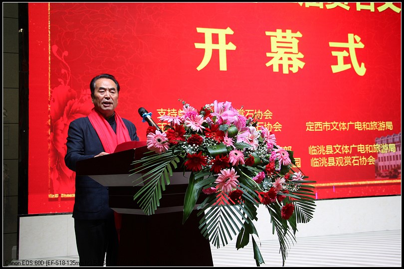 甘肃省观赏石协会会长郑忠,青海省观赏石协会会长毕崇毅,定西市科协党组书记、主席陈奋旗,临洮县委书记石琳,县人大常委会主任蒋景林,县政协主席肖长禄等县上领导及各地州市观赏石协会会长、副会长,广大石友参加开幕式。临洮县人大常委会副主任王建玲主持开幕式。