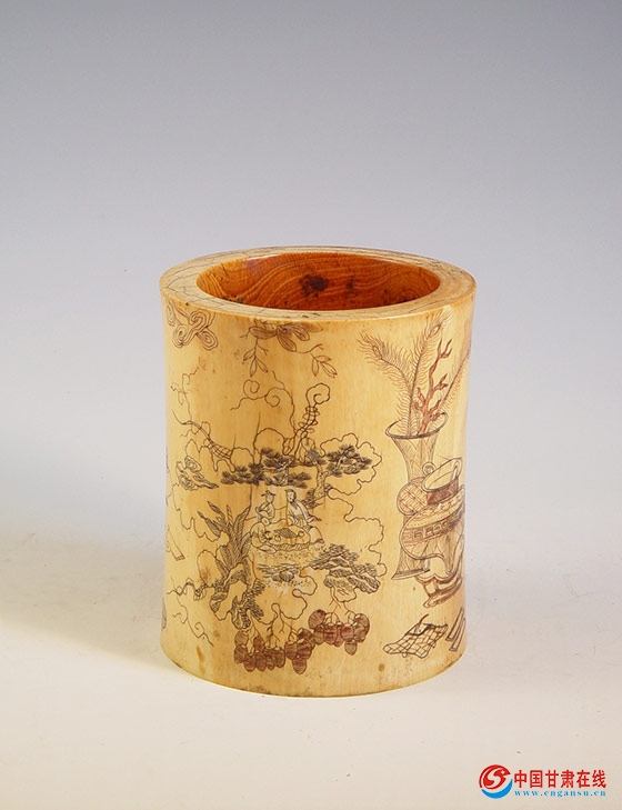 • 清朝牙雕博古笔筒