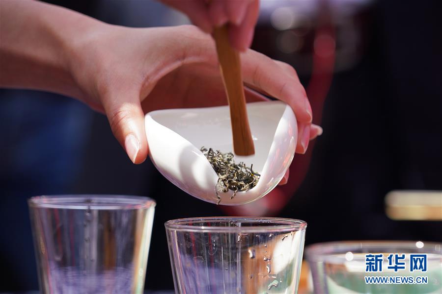 3月8日,在约旦佩特拉,来自中国浙江的艺术家展示茶艺。
