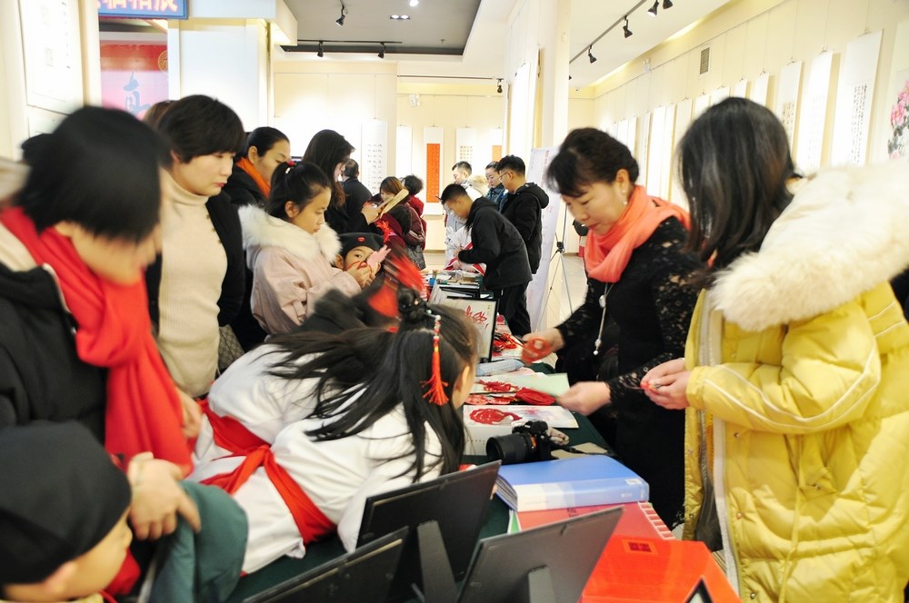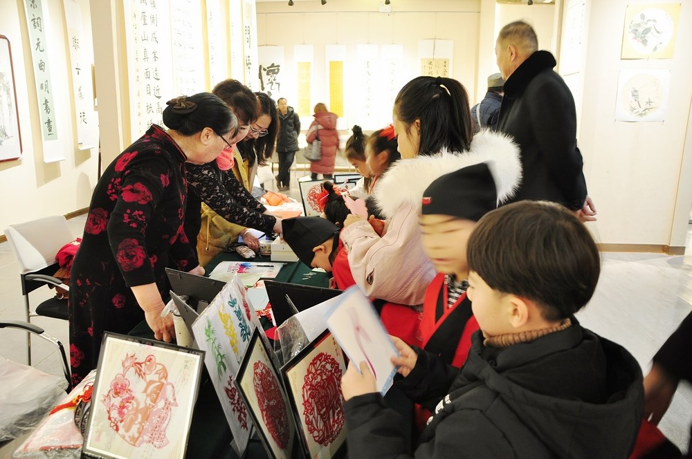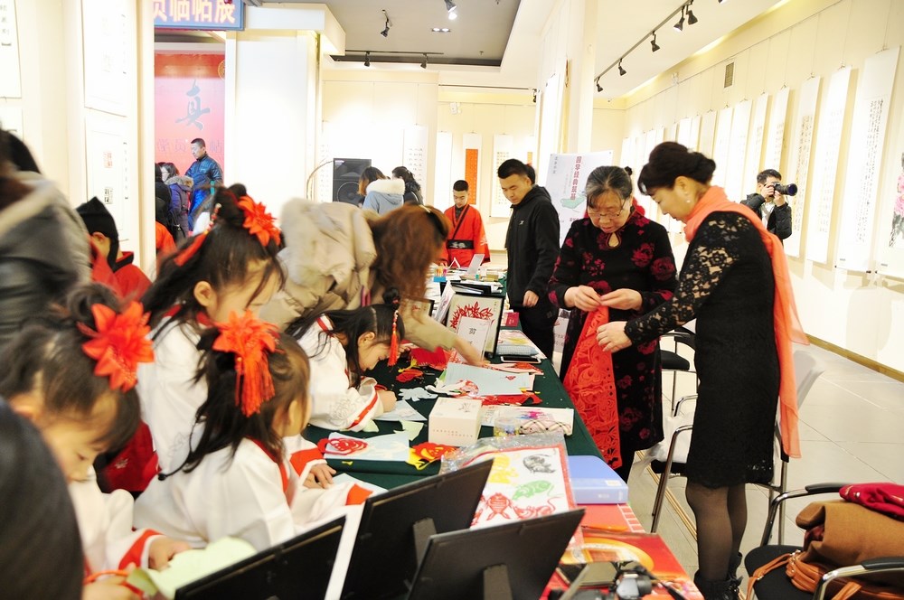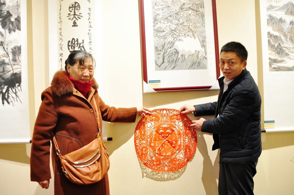 民间非物质文化遗产传承人任英珍老师和其女儿樊江华女士参加剪纸活动