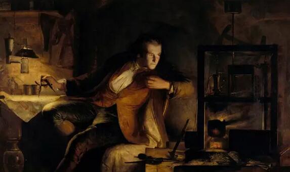 瓦特改良蒸汽机图(苏格兰画家詹姆斯·劳德作于1855年,现存苏格兰国家画廊)