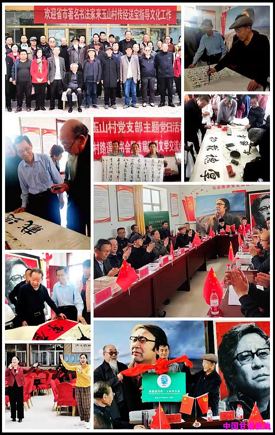 来自省城的省委原副秘书长省工商局原局长孙田民、省政府原副秘书长研究室主任省毛体书法研究会终身名誉主席魏武锋、省文史馆原馆长省老干部书画协会副会长王仲保、省家庭教育学会名誉会长《甘肃调解》总编辑解放、省飞天书画院副会长吴孟献、省书画研究院长副院长田纪振、著名书画家魏周山、全球路遥读书会兰州分会秘书长俞德强及红城镇镇长赵正禄、镇政务中心主任甘荣、驻村工作队全体队员,与玉山村读书积极分子、村民代表一起参加了活动。会场的文化氛围十分浓郁。由著名画家冉劲松绘制的两幅巨型路遥肖像矗立之中,路遥的一些作品及评介书刊陈列在桌上,醒目生动地烘托了活动主题。