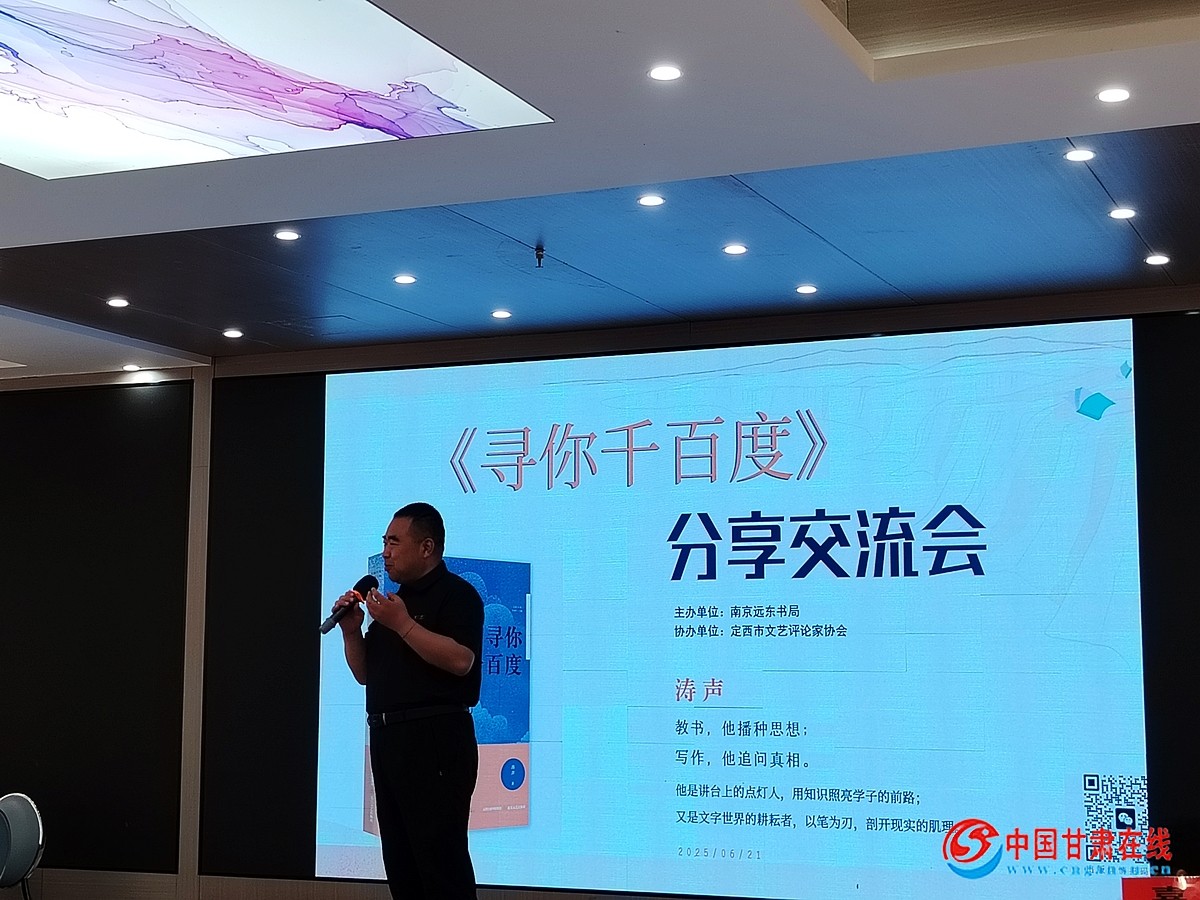 2025年 6月21日下午,南京远东书局主办、定西市文艺评论家协会协办的涛声长篇小说《寻你千百度》座谈会在岷县力源酒店举行。来自出版界、文艺界的近百名嘉宾共同见证了这部兼具时代特色与思想锋芒的长篇小说的正式亮相。