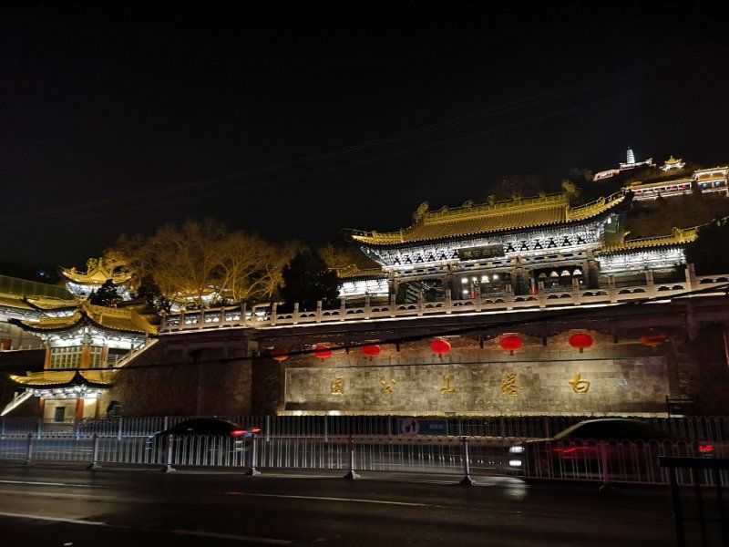 靓丽繁华锦绣罗,连绵绮景列黄河。星辉白塔瑩翡韵,焕映虹桥流彩波。游人织,惠风和。清凉堤道绿婆娑。欢声笑语呈祥泰,十里风情一首歌!