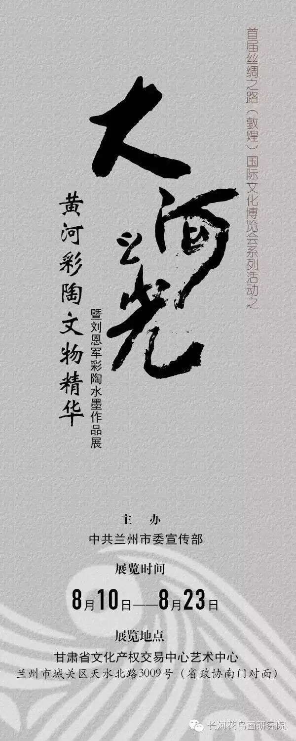 首届丝绸之路(敦煌)国际文化博览会系列活动之《大河之光——黄河彩陶文物精华暨刘恩军彩陶水墨作品展》开幕式于2016年8月10日上午10时在甘肃省文化产权交易中心艺术中心举行。