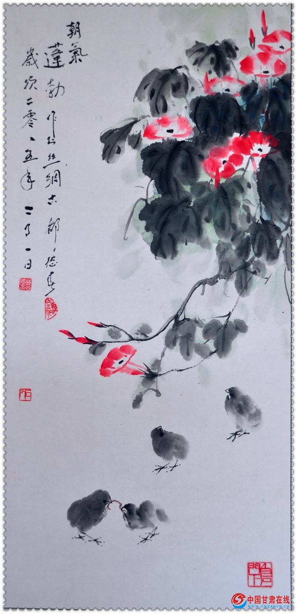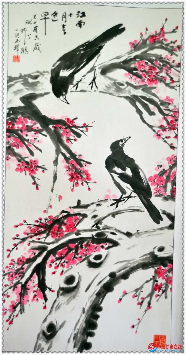 中国甘肃在线兰州讯 (文/图:赵小春)2019年5月25日10时,"曹德春花鸟画展"在位于兰州市南滨河中路(原兰州木器厂,兰木大厦320室)的兰州画家村开幕。