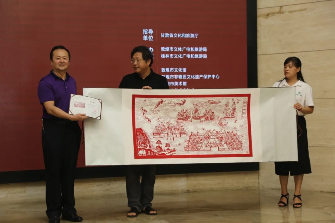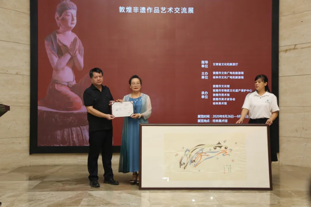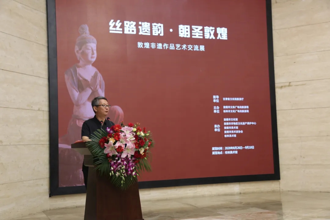 8月26日,由甘肃省文化和旅游厅指导;敦煌市文体广电和旅游局、桂林市文化广电和旅游局共同主办;敦煌市文化馆、敦煌市非物质文化遗产保护中心、敦煌市美术馆、敦煌市美术家协会、桂林美术馆联合承办的“丝路遗韵·朝圣敦煌”——敦煌非遗作品艺术交流展在桂林美术馆圆满开展,展览将持续至9月10日。