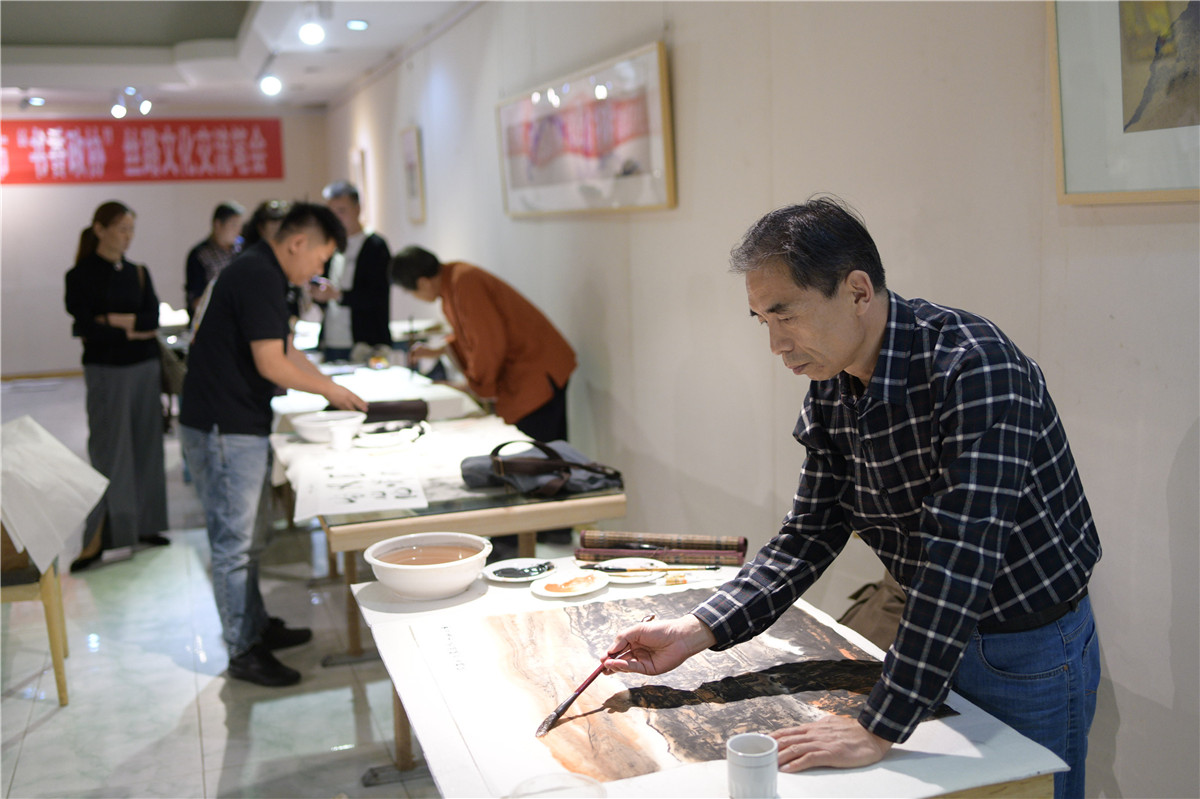 兰州市政协党组成员、副主席杨衍佐在活动开幕式讲话中说,希望两地艺术家珍惜这个机会,以书画创作为纽带,把政协平台当桥梁,交流感情、切磋技艺,相互学习、共同提高,努力在今后创作出更多精品佳作,取得更高艺术成就。(王斌银 文/摄影)