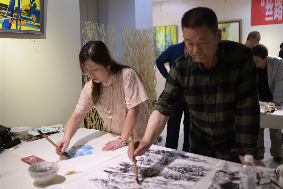兰州敦煌两地书画家在敦煌画院进行书画艺术现场创作、交流