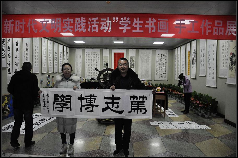 中国甘肃在线讯 厚韵翰墨香,醉美书华章。为弘扬我国优良传统文化,营造热爱国粹、热爱书法艺术的氛围,11月27日下午,白银市第十一中学邀请白银书画院知名书画家司马美君、胡登峰、马宏远、陶政聪、王福静、高爱军莅临白银市第十一中学,开展“书画进校园”文化志愿者服务活动。
