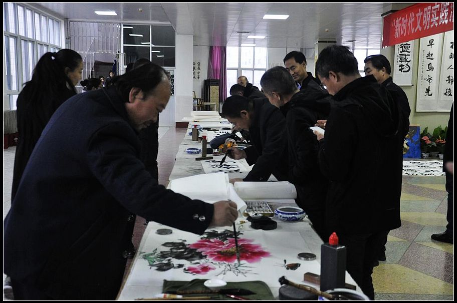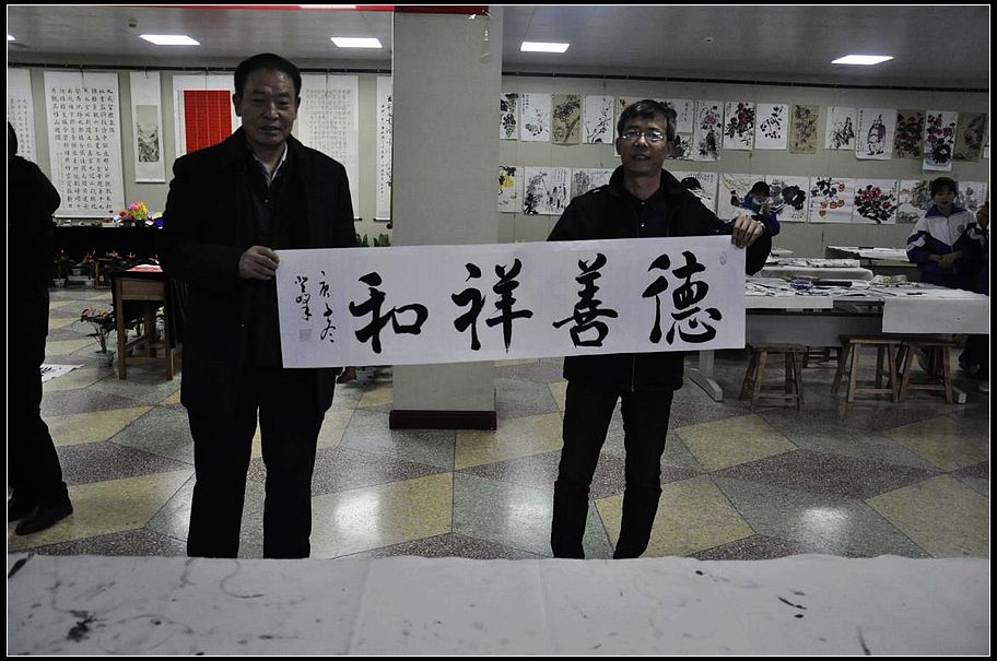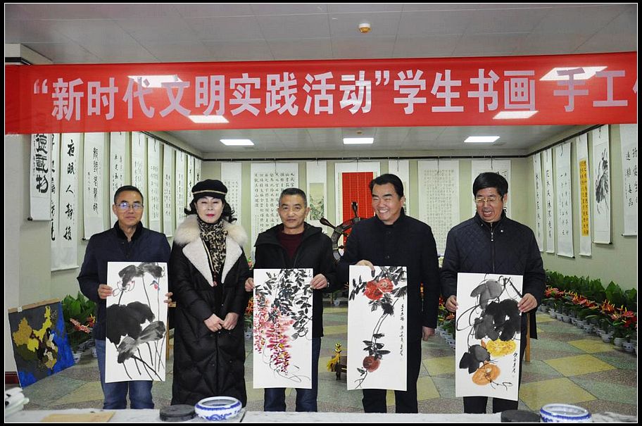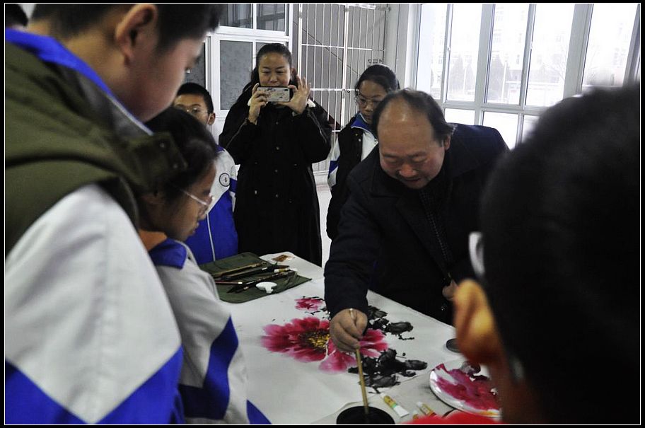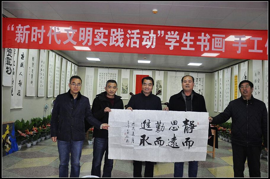 短暂的启动仪式过后,活动进入了"重头戏"环节——书画家们挥毫泼墨,现场书写、作画。活动中,书画家们挥笔不停,围绕着道德、立志、学习等鼓舞学生向上的主题挥洒墨采,多幅风格独特的书画作品跃然眼前。这些作品有表达对教育事业的希冀、有表达对师德的赞颂、有表达对教育事业的诚挚祝愿……苍劲有力的笔锋、恰到好处的着色、炉火纯青的技艺,无不让人啧啧称赞。书法家笔酣墨饱,画家妙笔丹青。师生们在现场屏息观看,现场创作结束之后更是驻足在书画作品前久久不肯离去。