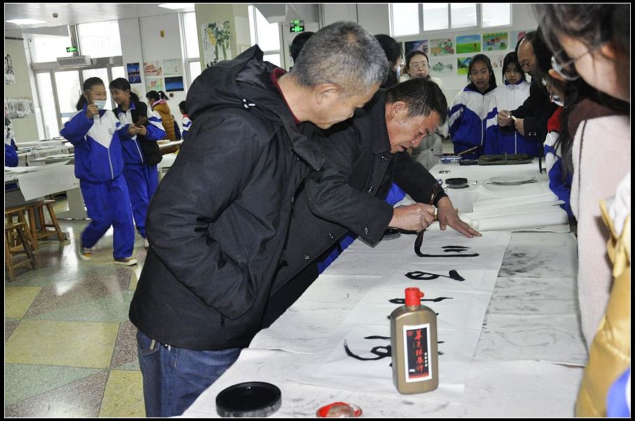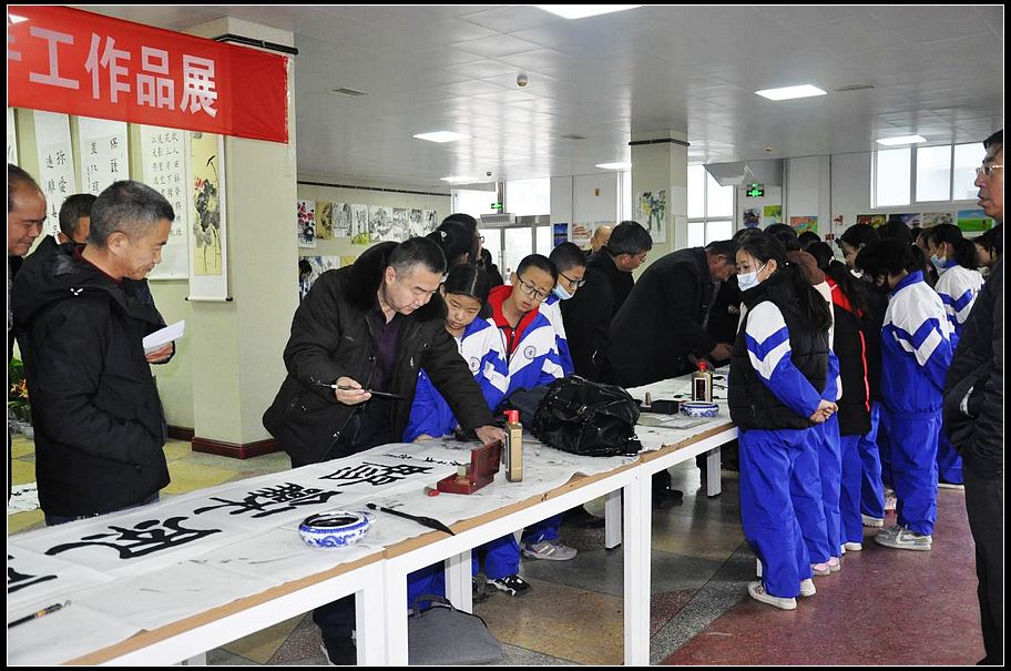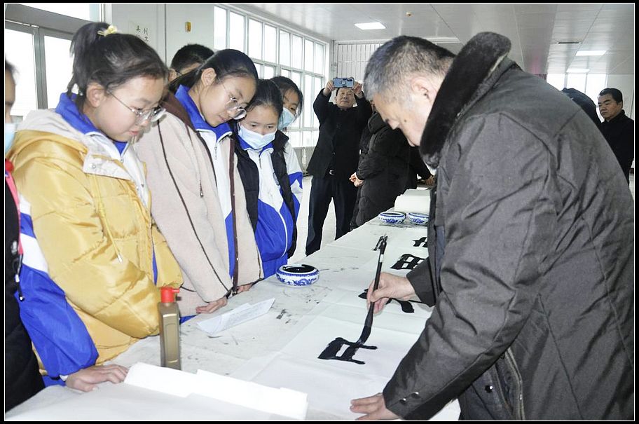 天气虽寒冷,却丝毫不影响师生们的热情围观,整个现场师生们认真学习,气氛浓郁,墨香四溢。各位书画艺术家对师生们耐心辅导、不吝赐教,既介绍了中国书法之美以及书写汉字的方法,又对不同字体的不同书写技巧予以传授,让师生们大开眼界,纷纷表示获益匪浅。