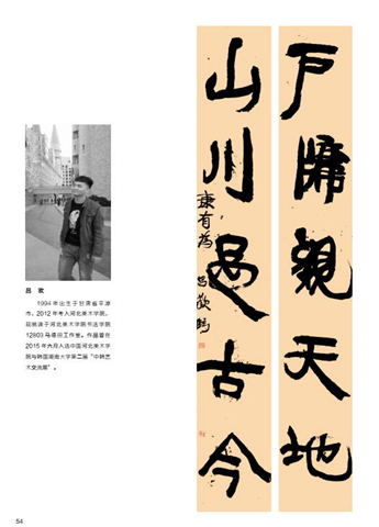 吕欢 1994年出生于甘肃省平凉市,2012年考入河北美术学院,现就读于河北美术学院书法学院12803马德田工作室。作品曾在2015年六月入选中国河北美术学院与韩国湖南大学第二届“中韩艺术交流展”。