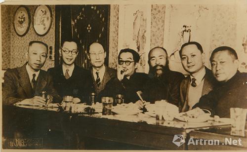 1946年在黄山艺苑,右起:郑午昌、张充仁、张大千、吴湖帆、许士祺、汪亚尘、颜文樑