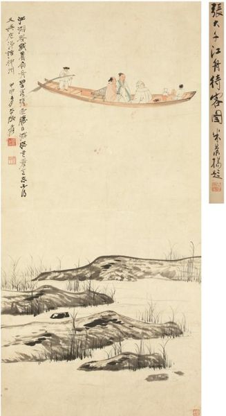 张大千(1899-1983)江舟待客图