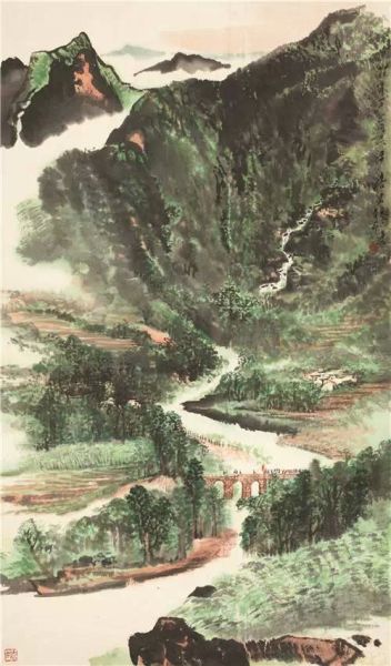 能贴近实际,贴近生活,因而博得人们的喜爱。在“文革”岁月中,唐云先生遭到不公正的待遇,赋闲在家。至文革后期即70年代初,形势稍有好转,可以创作一些书画,以革命圣地为主题的居多。本幅《走向革命圣地》即创作于此时。