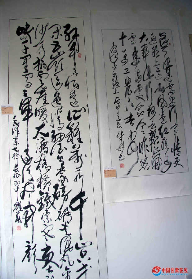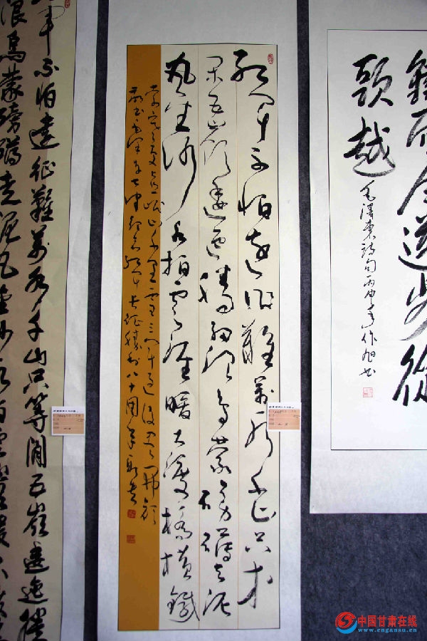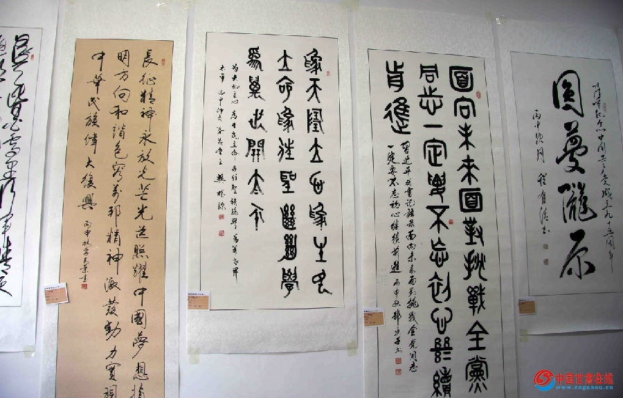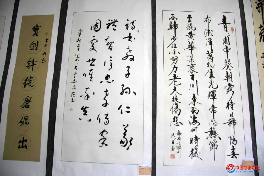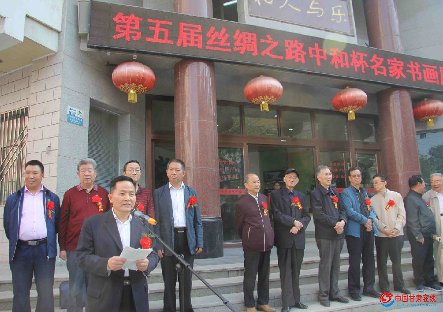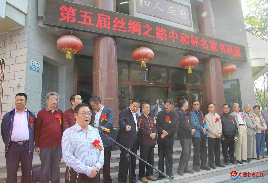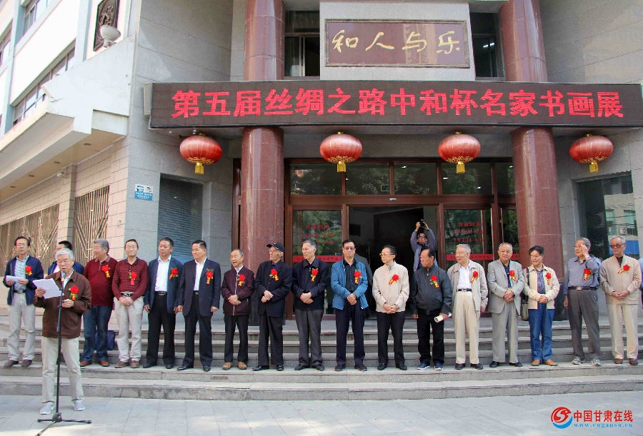 中国甘肃在线网讯:(王新年文/图)为纪念红军三大主力胜利会师80周年,庆祝首届丝绸之路(敦煌)国际文化博览会胜利召开,9月20日,由甘肃丝绸之路协会、兰州老年书画协会主办,兰州中和投资创业集团、白银中和文化投资控股有限公司协办的第五届丝绸之路“中和杯”名家书画作品在甘肃省老干部活动中心展出。开展仪式上,甘肃丝绸之路协会副会长马志荣宣读了获奖作者名单,兰州中和投资创业集团董事长洪涛致辞,兰州市文联副主席刘兵、甘肃丝绸之路协会常务副会长李继彬分别讲话,甘肃省人大原副主任、甘肃省书法家协会原名誉主席程有清宣布“第五届丝绸之路“中和杯”名家书画展”开展。 甘肃丝绸之路协会副会长李学舜主持了开展仪式。