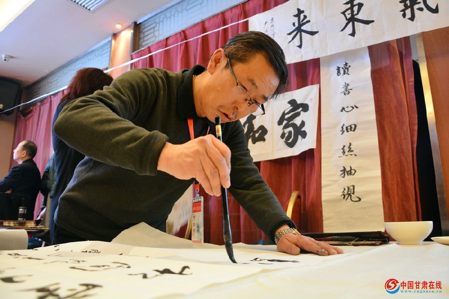 2018年1月27日上午9时,西部缘书画院在兰州市菜根香酒楼举行了2018年迎新春笔会。来自甘肃160多位书画家和书画爱好者,欢聚在一起,挥毫泼墨,互相交流。