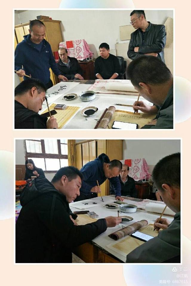 二O二O年,国庆恰逢中秋节,神州大地到处洋溢着节日喜庆气氛。十月六日,天水市麦积区甘泉镇龟凤山前,大江峪畔清雅斋,宾朋满座,满院书香。苏志航.王健鹏.何安康.范录君.李建国.任鹏鹏.赵会明几位甘肃省书法家协会会员齐聚一堂,以笔会的形式同庆双节。