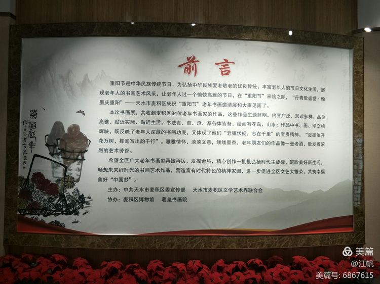“重阳节”老年书画邀请展,由中共天水市麦积区委宣传部.天水市麦积区文学艺术界联合会主办,天水市麦积区博物馆.天水