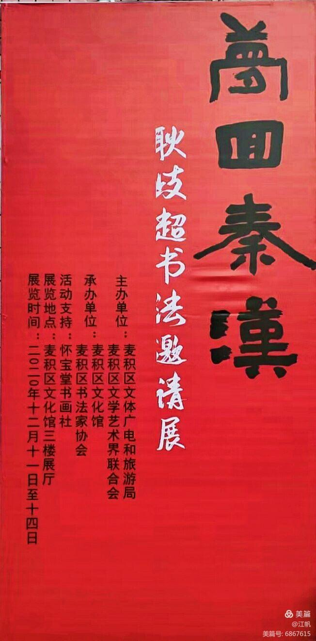 中国甘肃在线天水讯 12月11日,由麦积区文学艺术界联合会、区文体广电和旅游局主办,麦积区文化馆、区书法家协会承办的“梦回秦汉”——耿歧超书法作品邀请展在麦积区开展,展期四天(12.11——12.14)。