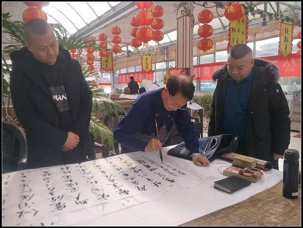甘肃省人民政府原副秘书长、现任甘肃毛体书法协会名誉会长魏武峰现场创作书法作品