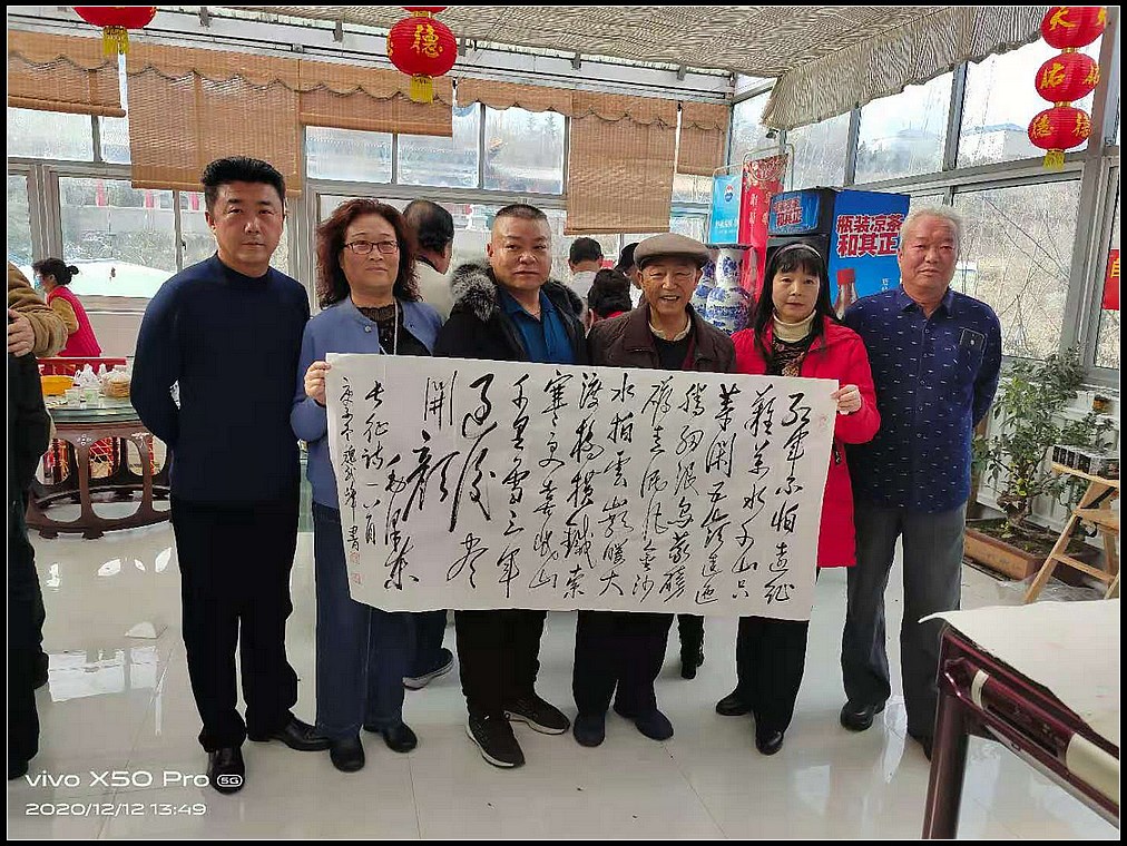 他说,黄河咏诗,南山蕴玉。岁月如铁,光华流金。披荆斩棘,奋发图强的2020年即将过去,踌躇满志,志在必得的新的一年即将到来!在除旧迎新的转折时刻,东朋书画协会、东朋商贸公司联合组织陇上书画家、企业家以及社会各界名士贤达云集壮美的皋兰山之巅,舞文弄墨,笙笛歌舞,共兴文化之事,承前启后,继往开来,意义非凡!
