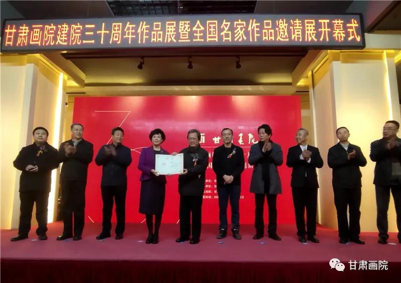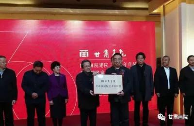 开幕式上,冯远先生受聘为甘肃画院顾问,连辑先生受聘为甘肃画院名誉院长,副省长何伟为冯远、连辑颁发聘书;甘肃画院国画院、油画院、美术研究院、青年画院、书法院和甘肃省画院美术馆联盟也正式宣布成立并现场授牌。